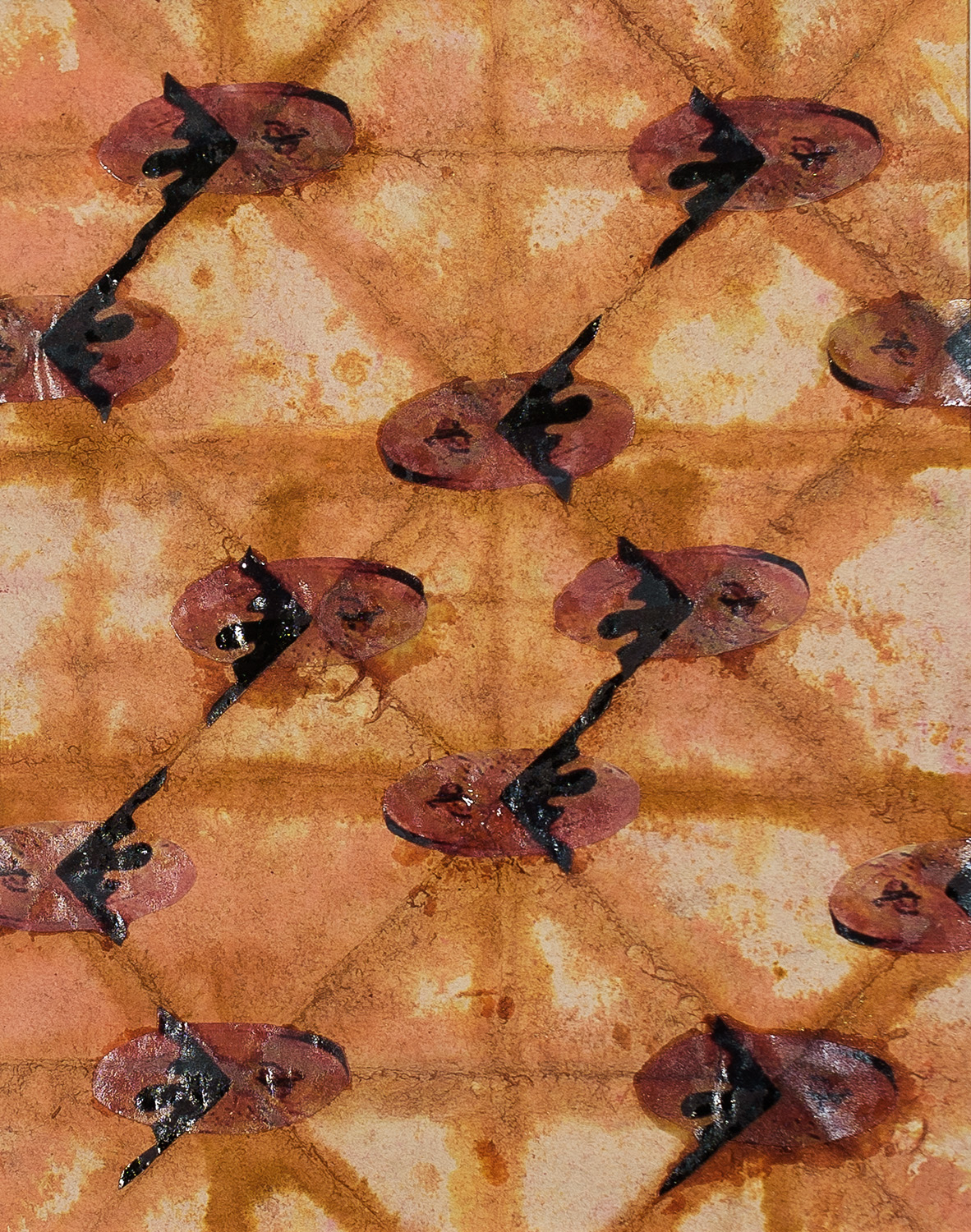 Sundial: Epoxy resin, ink, watercolor and sundials on soaked and folded rag paper.